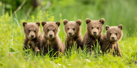 Curious Cubs: A Quintet of Brown Bear Siblings in the Wild