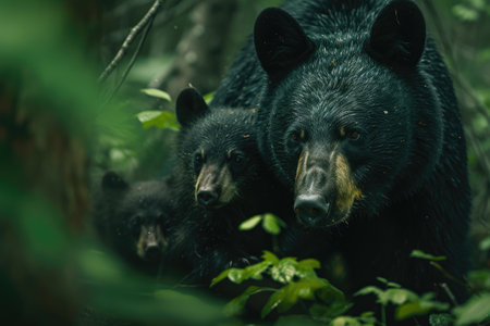 Wild Harmony: Black Bear Family in Morning Forest