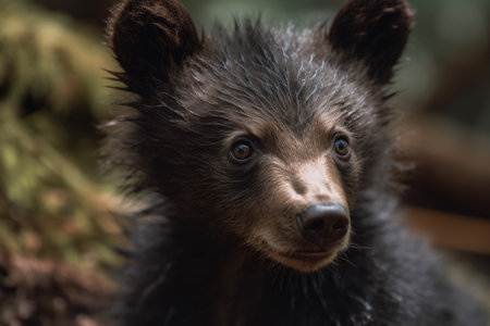 An AI generated illustration of an adorable and endearing baby bear in his natural habitats