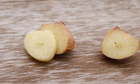 A piece of white garlic which is absolutely fresh, it is used to increase the taste in food, it improves digestion process