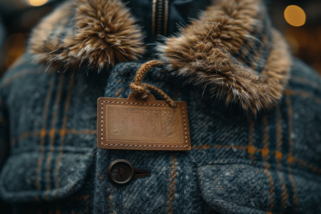 Close Up of a Plaid Winter Jacket With a Fur Trim and Leather Tag