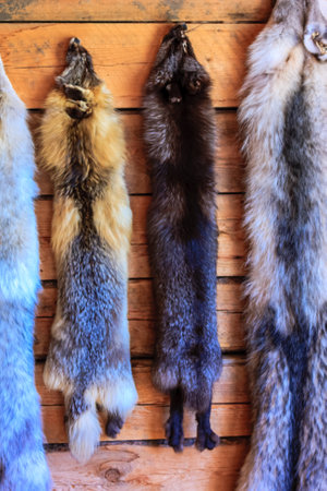 Finished skins from animals. Mink, arctic fox skins from animals. mink farm. Fur coat, dear