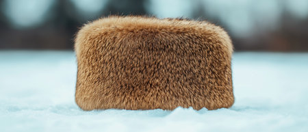 Fur hat for winter for men, on natural snow. there is toning and close-up.