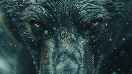 This stunning close-up image showcases the intense gaze of a dark-colored wolf, emphasizing its striking amber eyes and detailed fur. Perfect for nature enthusiasts.