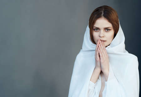 Portrait of a beautiful woman in the image of the jesus