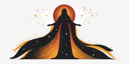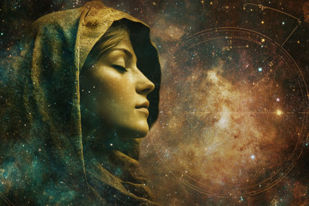 Mystical Female Figure Shrouded in Cloak Amongst the Stars.