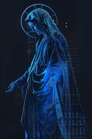 A graceful, modern illustration of the Holy Mother Mary, perfect for religious holidays.
