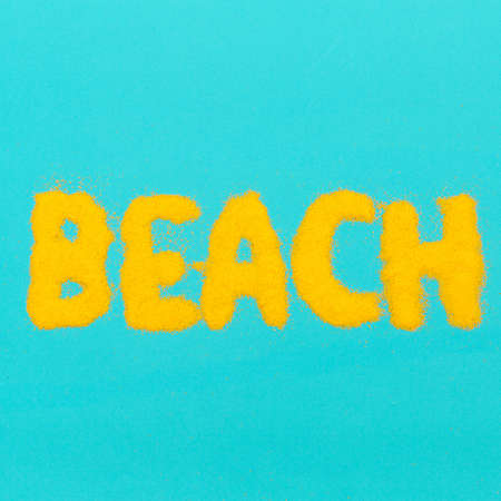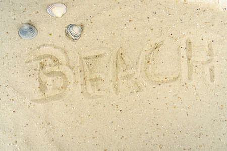 The word beach written with the finger in the sand, seashore