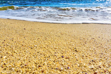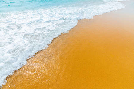 Clean sea water wave on clear fine sand beach, nature concept background, outdoor day light