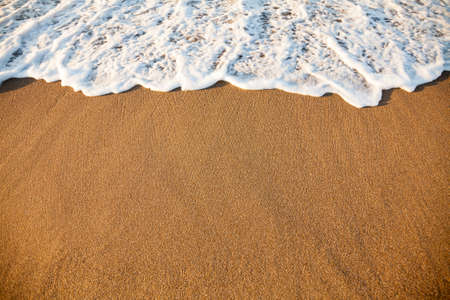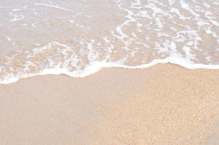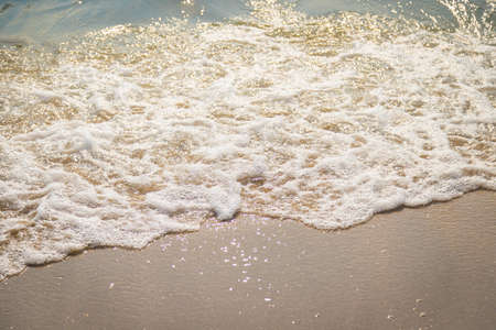Background soft wave of Sea with foam on sandy beach, copy space.