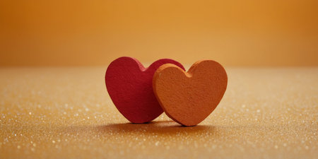 AI Generated. Red hearts on orange and yellow background Love or Valentine's day concept Minimal, flat lay