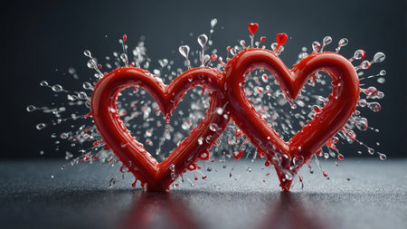AI Generated. Two hearts are reflected in a red background