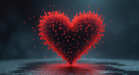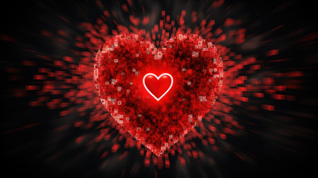 AI Generated. Fiery Red Heart Particle Design Dark Background