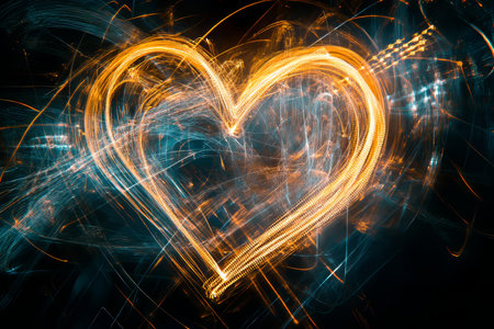 Long Exposure Photo of a Hand-Drawn Heart - Abstract Art, Romantic, Glowing