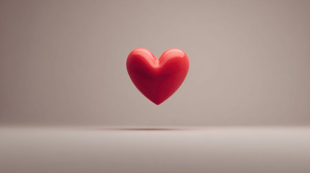 A captivating floating red heart symbolizing love and affection, set against a neutral backdrop. Ideal for use in romantic, emotional, and design projects.