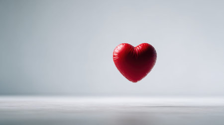 A vivid red heart floats gracefully against a soft, serene background, evoking feelings of love and passion in a minimalist and artistic composition.