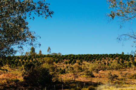Dramatic view of Minas Gerais coffee plantation farm in different tones of green in the afternoon.