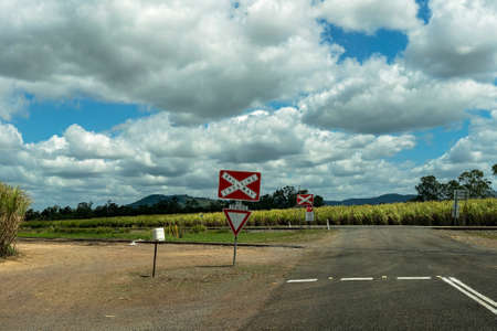 Bruce Highway Townsville to Mackay, Queensland, Australia - November 2021: Roadside sign warning of quarantine area and do not carry sugarcane in your vehicle