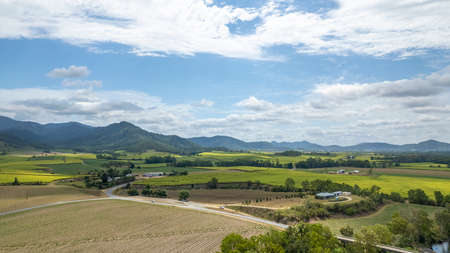 Landscape and roads in the Howqua Valley near Mt Buller on a hot summer's day in Victoria, Australia