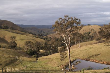 typical rural scenery in Australia, with beautiful clouds in blue sky