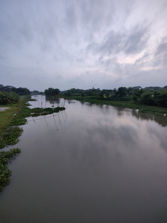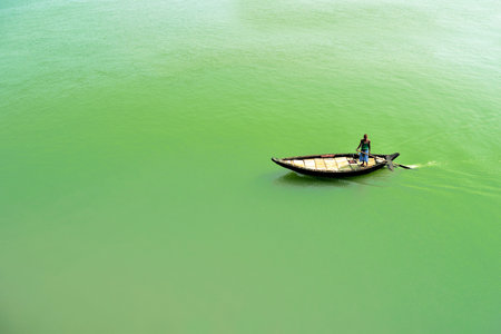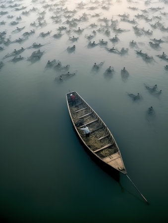Generative AI : Aerial view of fishing nets along Kaliganga river in Manikganj Bangladesh