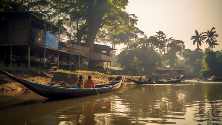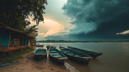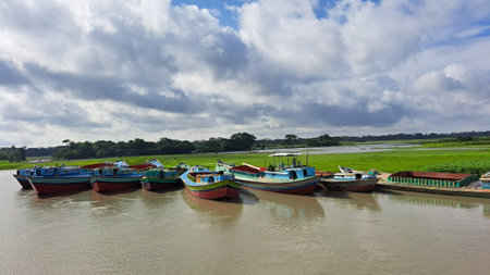 Generative AI : View of traditional wooden boats for fishing along the shore in Coxs Bazar Bangladesh