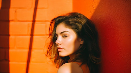 portrait of a beautiful girl on a background of an orange wall