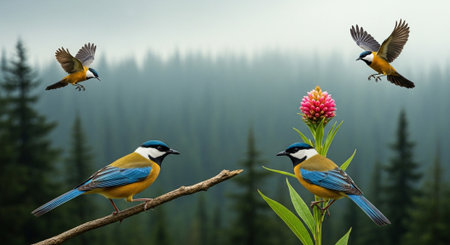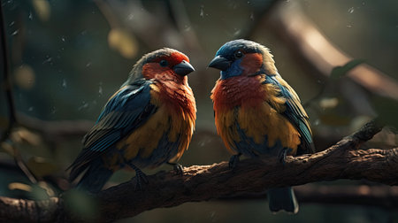 Chirpy Birds tree branch wildlife. Fauna wild. Generate Ai