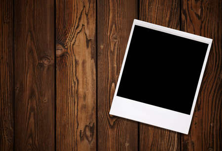 Retro empty photo frame. White plastic border isolated on white. Template photography.