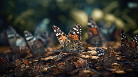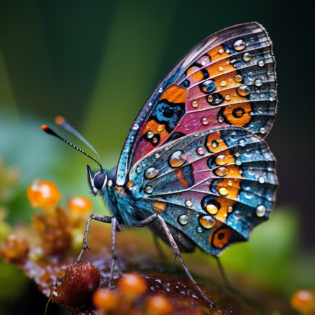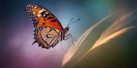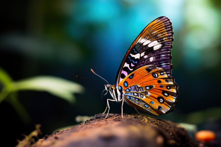 The fragile beauty of a multi colored butterfly in nature macro generated by artificial intelligence