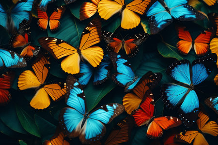 A colorful array of butterflies perched on lush green leaves celebrating nature s splendor