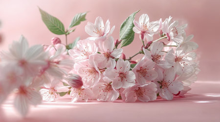 AI Generated. Cherry Blossom Branches in Soft Pastel Colors with Delicate White Flowers and Pink Background