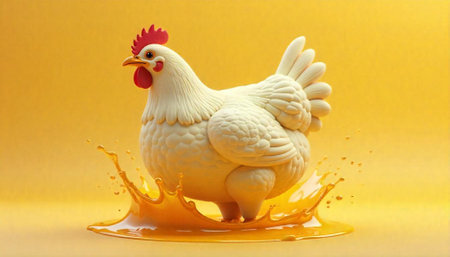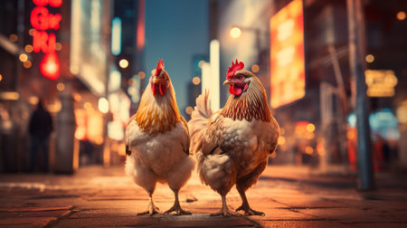 a majestic chicken stands proudly in the golden hour, its plumage glistening with warm tones, captured in a stunning side view portrait, reminiscent of national geographic's iconic wildlife photography, shot on agfa vista film, evoking a sense of rustic charm and rural serenity. ai generated