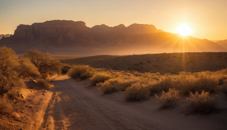 ai generated ai generative sand desert hot dirty road path outdoor arizona western nature landscape background road trip travel adventure explore vibe graphic art
