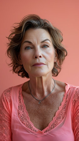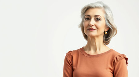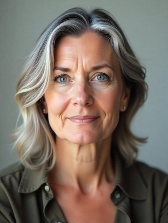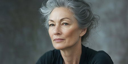 Closeup portrait of a middle-aged woman looking at the camera, studio shot, senior