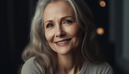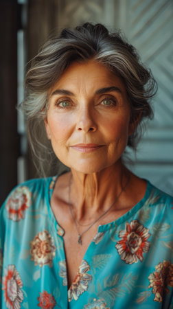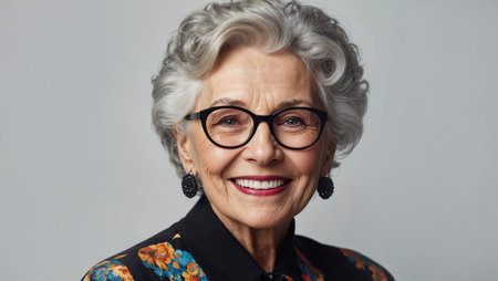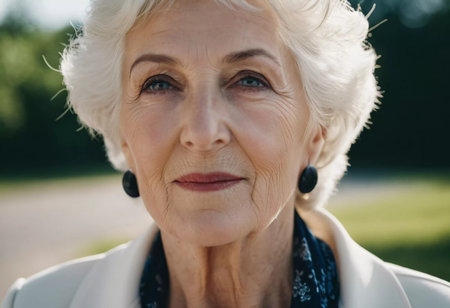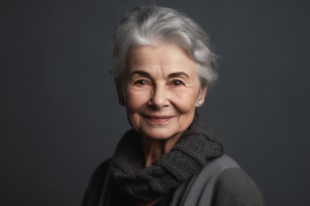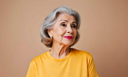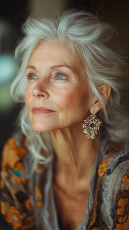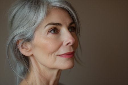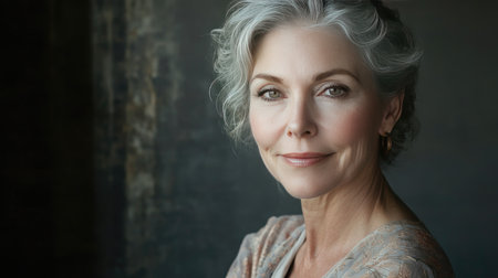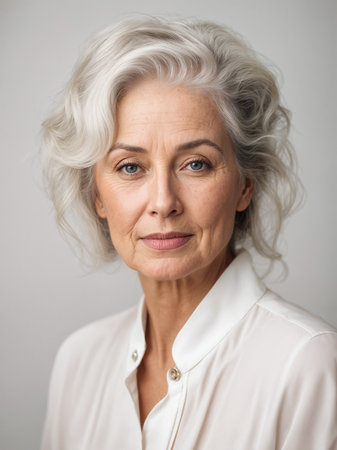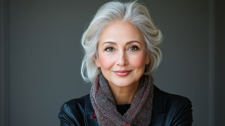 Elegant portrait of a senior woman with stylish gray hair, showcasing her natural beauty and charm.
