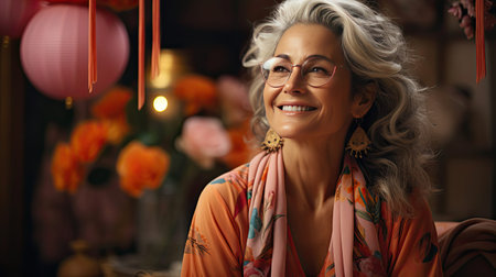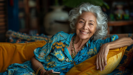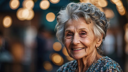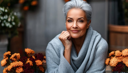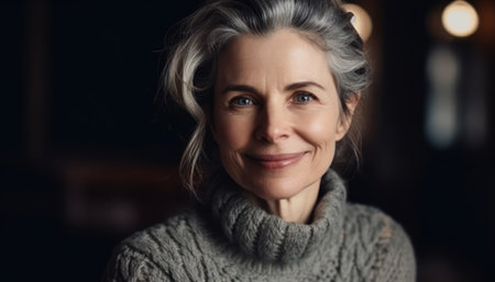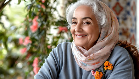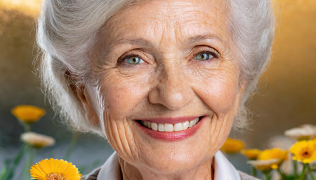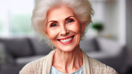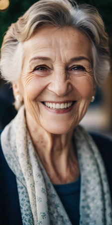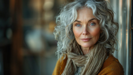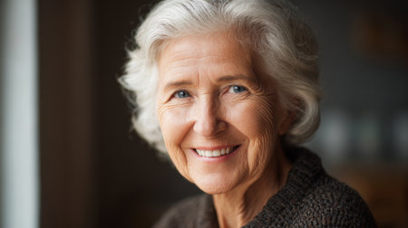 Elegant Older Woman Displaying Graceful Aging, a Vision of Timeless Beauty with Warmth and Style.