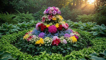 Vibrant floral display in a lush sunlit garden