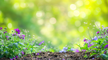 Vibrant flower field in springtime sunshine, nature background