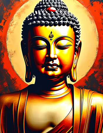 buddha in colorful vintage style illustration. Abstract painting, oil painting
