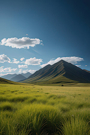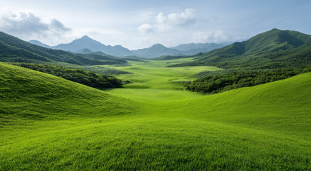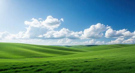 Rolling Green Hills under a Beautiful Sky: A Serene Landscape Panorama