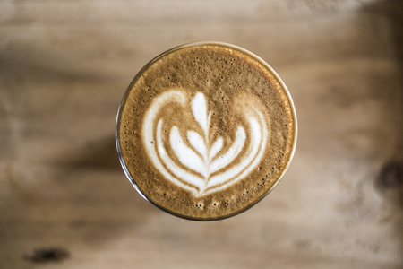 Cup of coffee with latte art pattern milk foam
