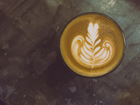 coffee latte art in cofeee sbop vintage color tone