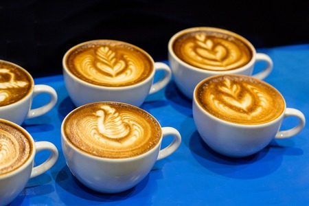 Coffee cup with latte art on the abstract background