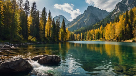 Mountain lake in autumn. Beautiful nature scenery with mountain lake.