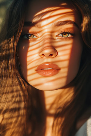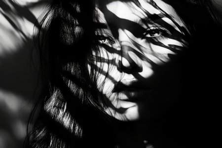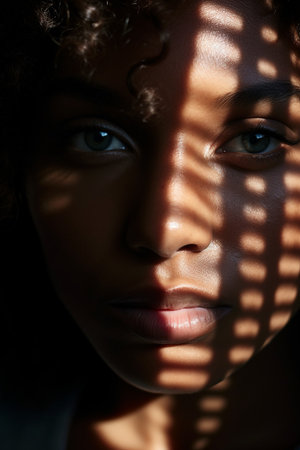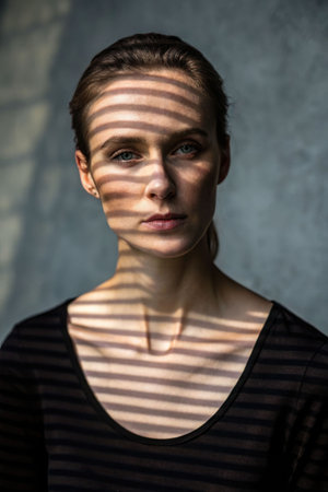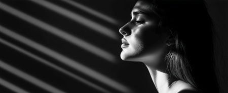Moody Portrait of Woman in Dramatic Light Beam