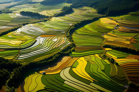 Aerial view of green rice terraces in Mu Cang Chai, YenBai, Vietnam, AI Generated