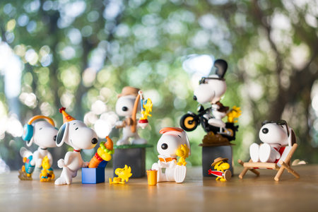 Bangkok, Thailand - January 31, 2024 : Many very cute from Pop Mart Snoopy The Best Friends Series Figures toy. A whole set contains 9 blind boxes