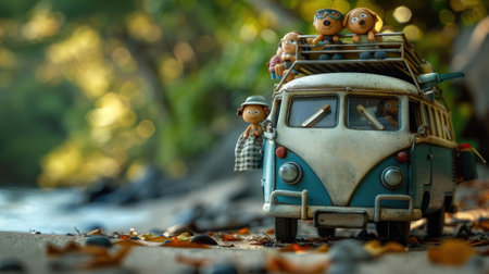A van for traveling with toys in nature. The concept of summer car trips. A mobile home.