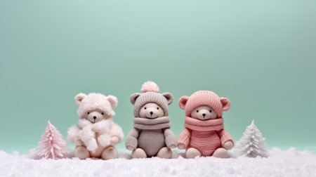 Teddy bears wearing a Santa hat on a festive New Years background. Christmas card with animals. present.